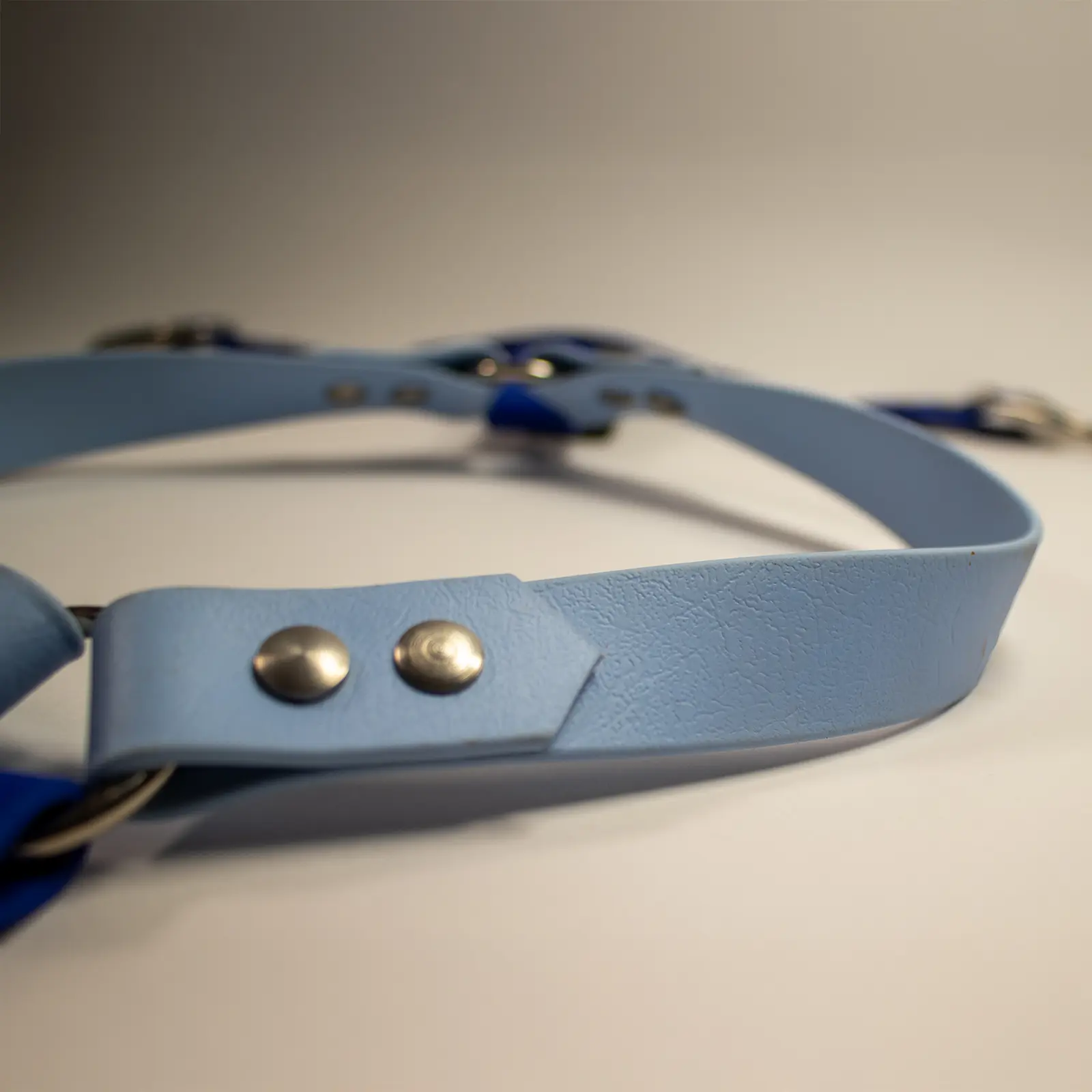 Le biothane, matériau phare de ce harnais, est à la fois résistant, flexible et facile à entretenir. Résistant à l’eau, aux frottements et à l’usure, il conserve son aspect neuf même après une utilisation prolongée en extérieur. De plus, son entretien est simple : un peu d’eau et de savon suffisent pour garder le harnais propre et impeccable.